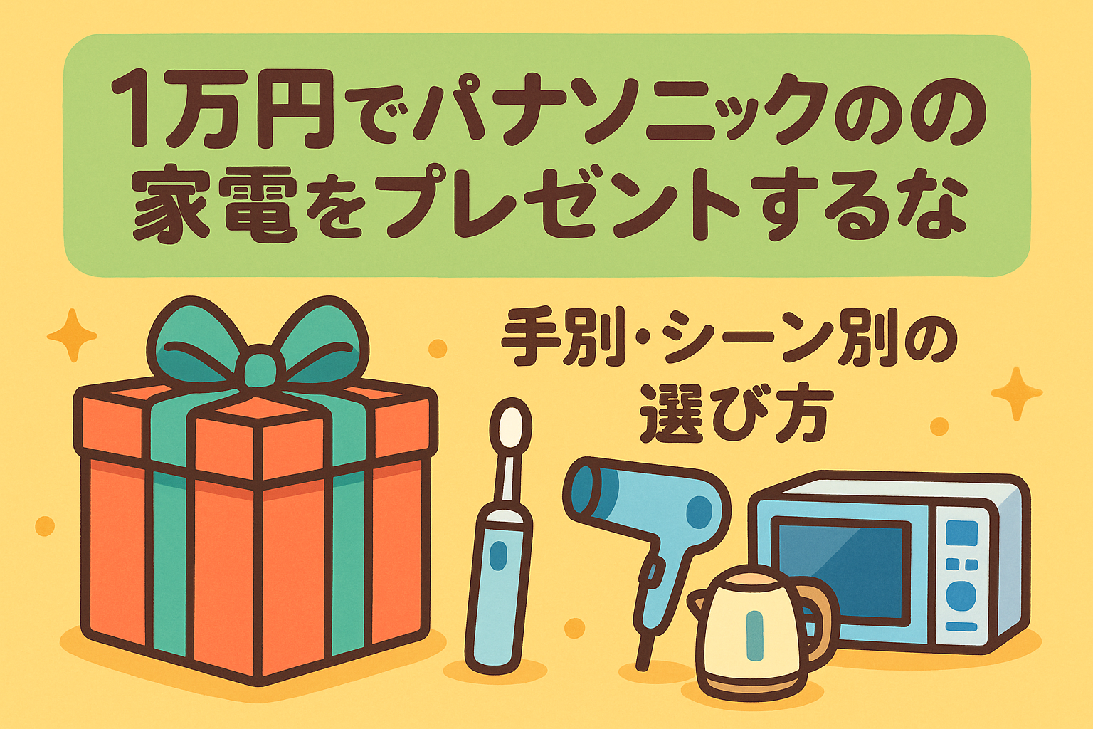 「1万円でパナソニックの家電をプレゼントするなら何がいい?」の答えは、相手の“毎日”に自然に溶け込む小型・実用アイテムを、生活シーンに合わせて選ぶことです。最後は色・サイズ・同梱物・保証書の扱いまで確認して、気持ちよく贈りましょう。