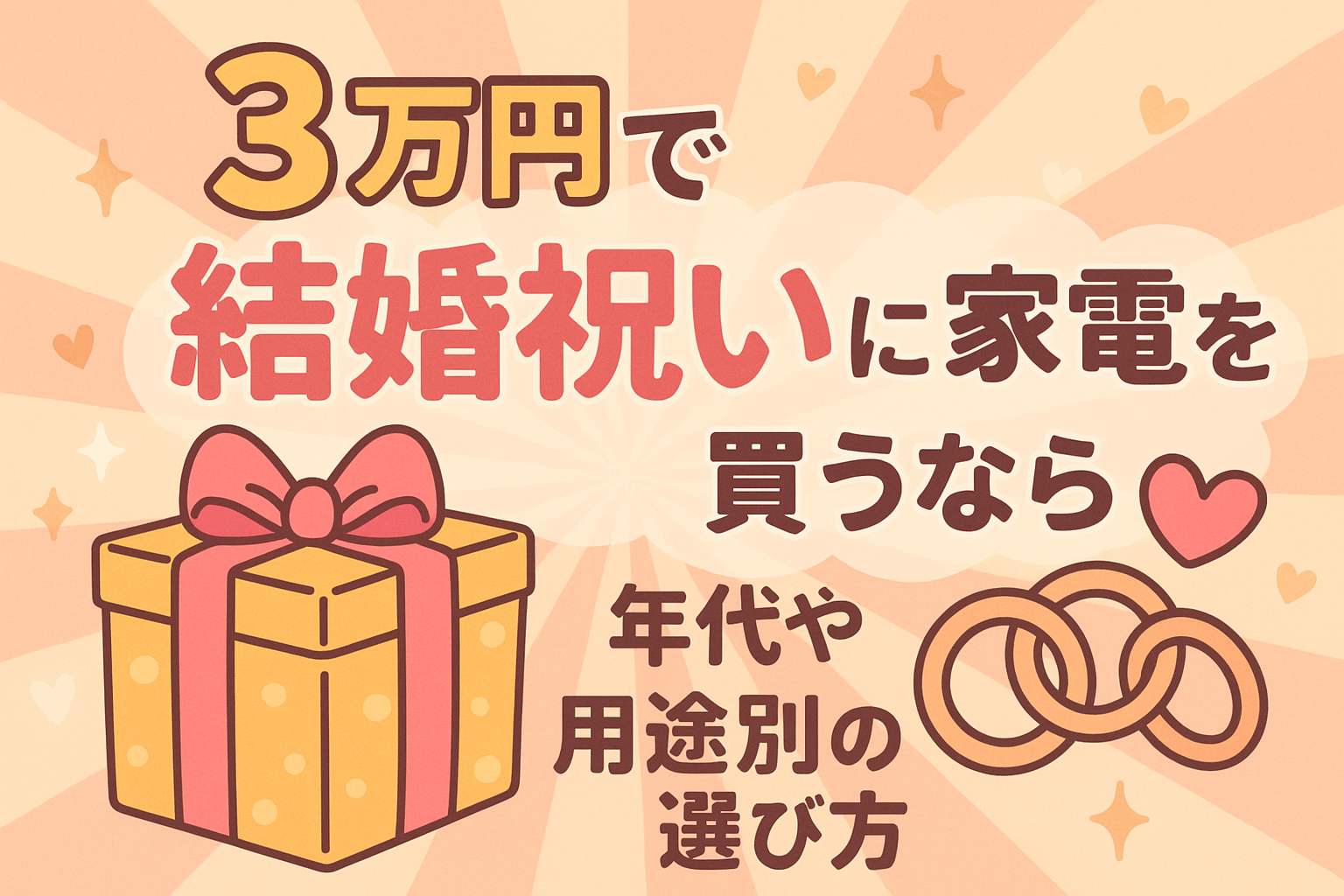 「相手の暮らし(年代・人数・間取り)に合う」「省スペース」「省エネ」「保証・のし等の実務が整う」の4点を押さえると、3万円前後の結婚祝い家電は選びやすくなります。