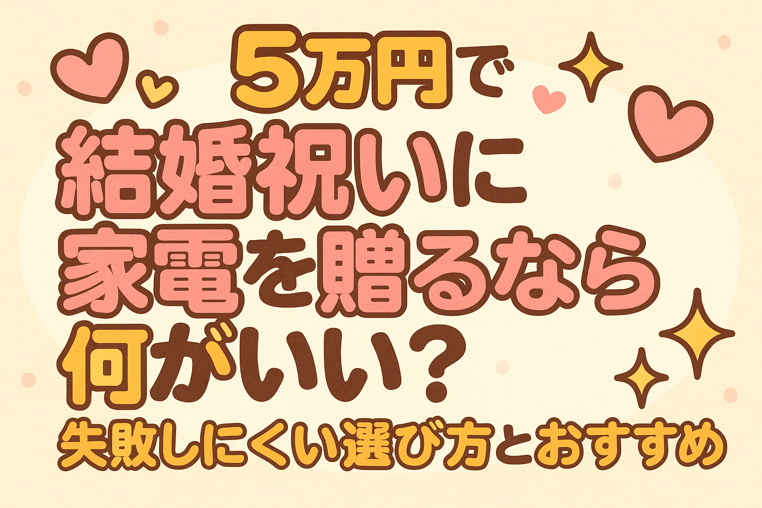 「5万円 結婚祝い 家電」は、相手の暮らしの動線に合う“毎日使いの時短家電”を軸に選ぶと喜ばれやすいです。
