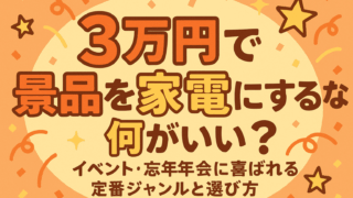 未分類 3万円で景品を家電にするなら何がいい?イベント・忘年会に喜ばれる定番ジャンルと選び方 3万円の予算で「ビンゴや抽選会の景品を家電にするなら何がいい?」にやさしく答える記事です。先に結論です。毎日使う×置き場所に困りにくい“小型実用家電”を軸に、目玉1点+サブ1〜2点の配分にすると、当選本数が増えて会場が盛り上がりやすくなりま... 2025.09.18 未分類