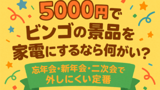未分類 5000円でビンゴの景品を家電にするなら何がいい?忘年会・新年会・二次会で外しにくい定番 先に結論。5000円前後なら、小型で毎日使える家電が“もらって困りにくい”定番です。たとえば電気ケトル・卓上加湿器・ハンディファン・ミニ調理家電・エチケットケア家電などは、置き場所を取りにくく、操作もシンプルです。価格や在庫は時期・店舗・セ... 2025.09.19 未分類