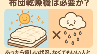 未分類 布団乾燥機は必要か?あったら嬉しい状況となくてもいい人とは 先に結論。布団乾燥機が「あると嬉しい」のは、梅雨や冬の湿気・冷えが気になるとき、ベランダ干しが難しい住環境、ダニ対策を補助したいとき、靴・衣類のスポット乾燥も1台で済ませたいときです。いっぽうで「なくてもいい」人は、天日干し・除湿機・ドラム... 2025.09.14 未分類