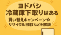 対象機種の購入+古い冷蔵庫や洗濯機の回収をセットにすると、通常より多くのポイントがつく、という企画が行われている時期があります。